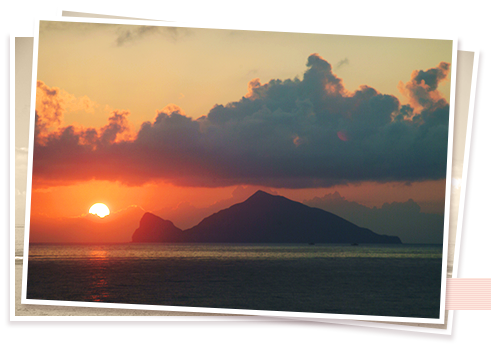 | 龜山島為孤懸於太平洋中之火山島,外貌酷似浮龜而得名,全島由龜頭、龜甲、龜尾所組成,龜尾部份是一片細長砂洲,隨著潮水漲落,彷彿神龜擺尾。龜山朝日是蘭陽八大景之首,每當旭日初昇、五彩繽紛、氣勢萬千,美不勝收。龜山島賞鯨時尚風潮,趨之若鶩。 |